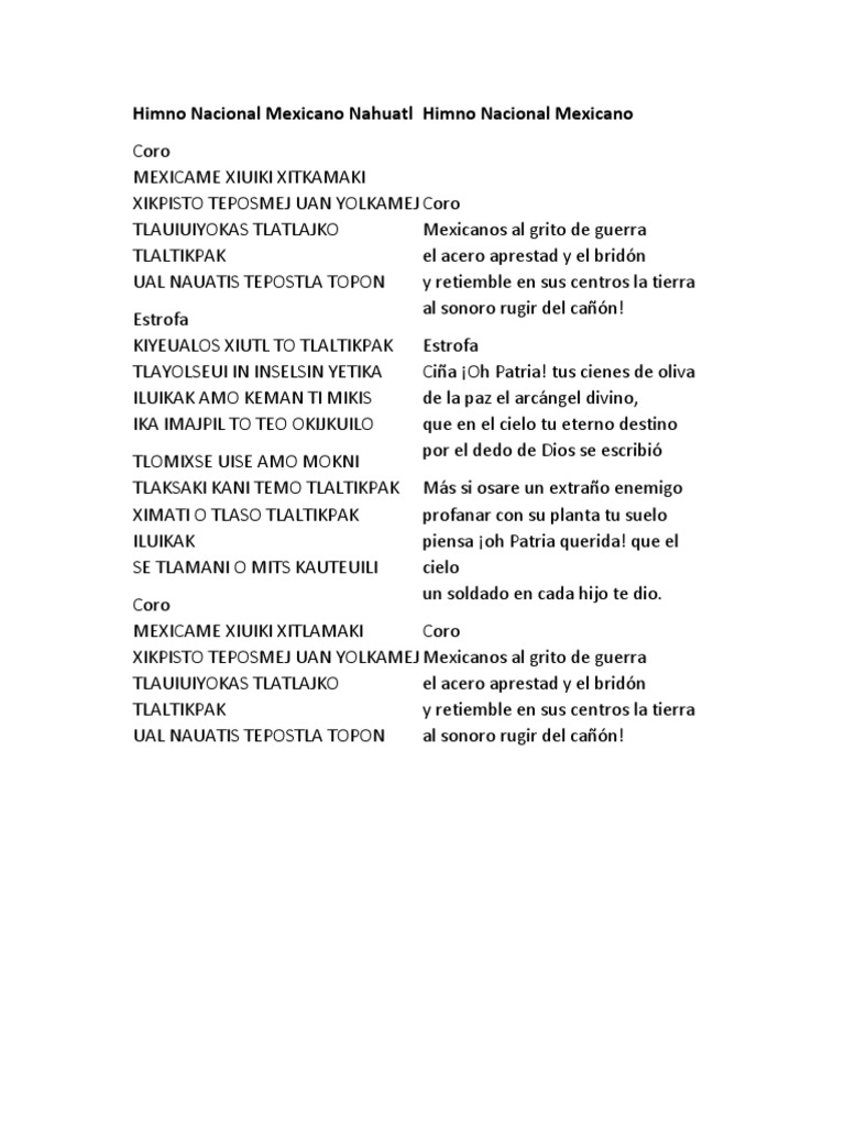 Source: lat-respuestas.com Himno nacional mexicano, nahuatl languages:
